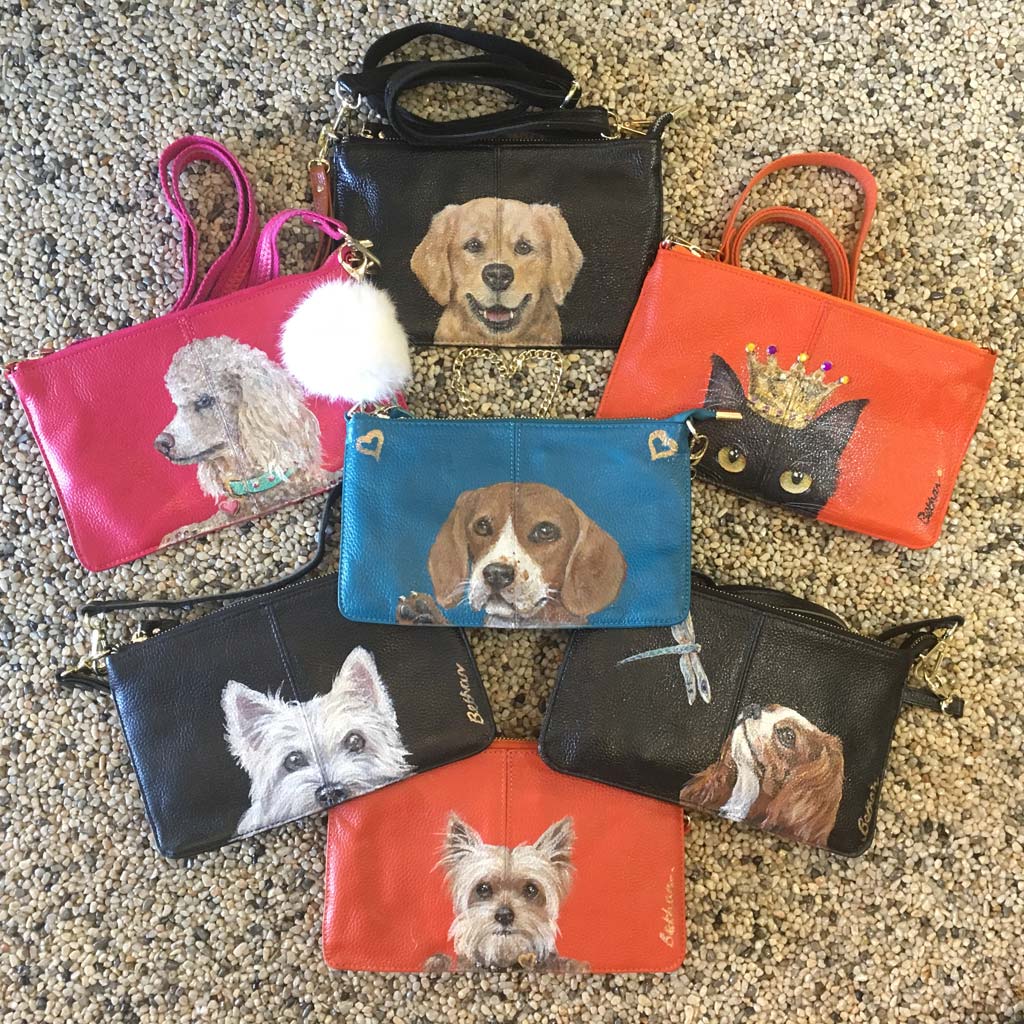 Choose from our collection of bags, or have a custom bag painted of your favorite pet. Great idea for a gift, for a daughter to grandma! These bags come in a variety of fun colors for every season.